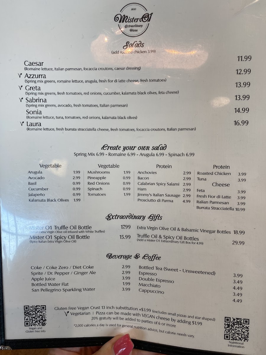 The selection extends beyond pizzas to vibrant salads, all crafted from fresh, quality ingredients, ensuring every bite is a celebration of flavors. With attentive service and a welcoming atmosphere, Mister O1 promises not just a meal, but an extraordinary dining experience!